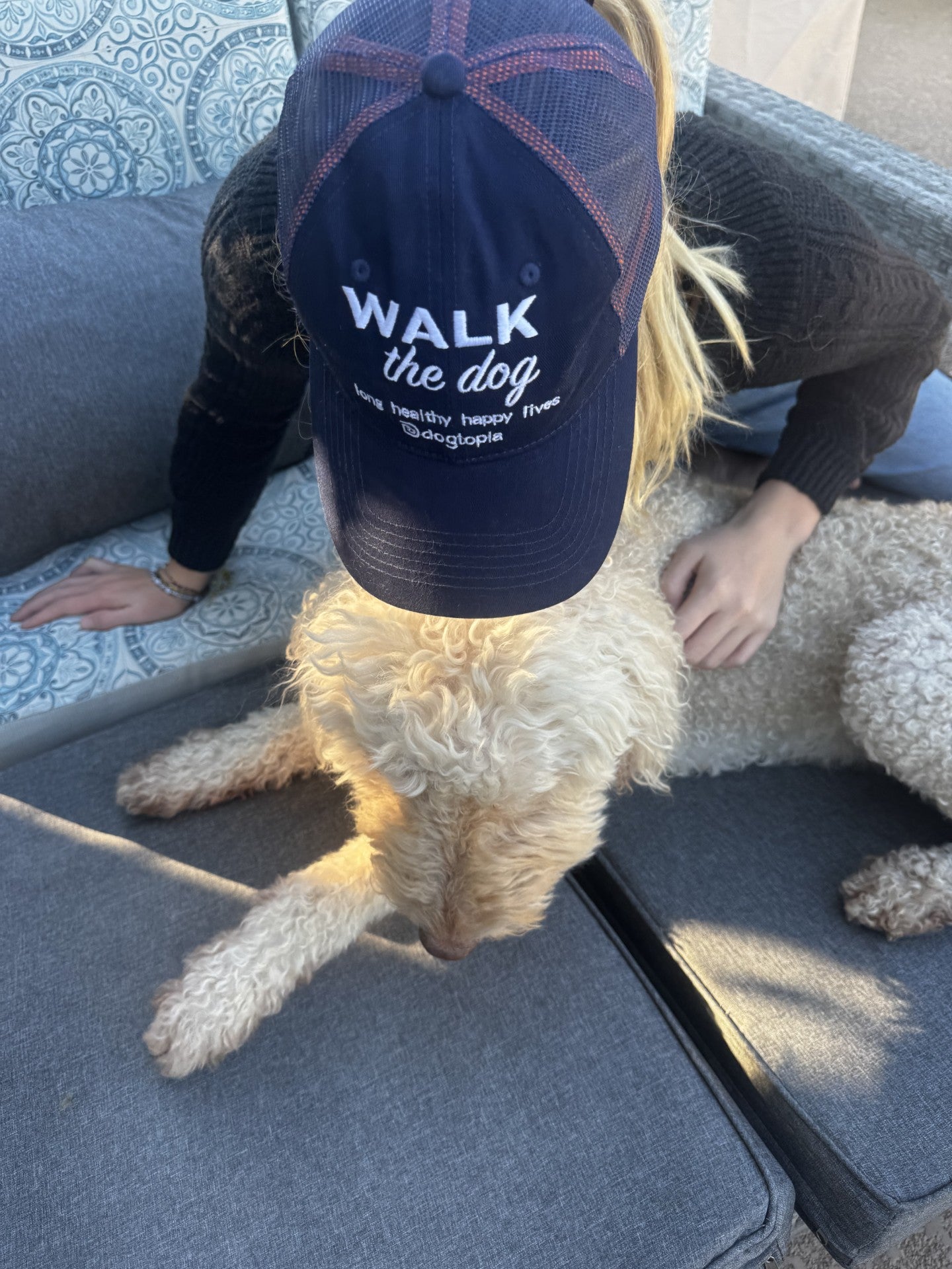 Dogtopia Walk the Dog Hat – the ultimate accessory for dog lovers who believe every stroll deserves a sprinkle of personality.