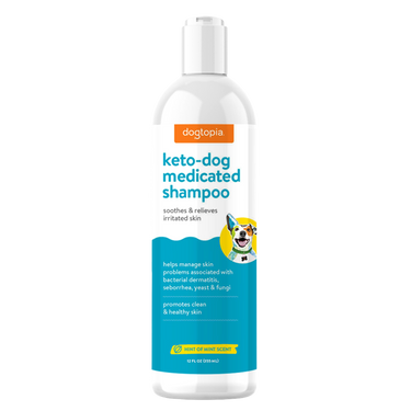 Dogtopia Keto Dog Medicated Shampoo combines two highly effective ingredients: ketoconazole and chlorhexidine gluconate. Formulated to provide a therapeutic bath, it washes away the microorganisms that can lead to skin conditions. The added benefit of colloidal oatmeal helps to soothe and moisturize.